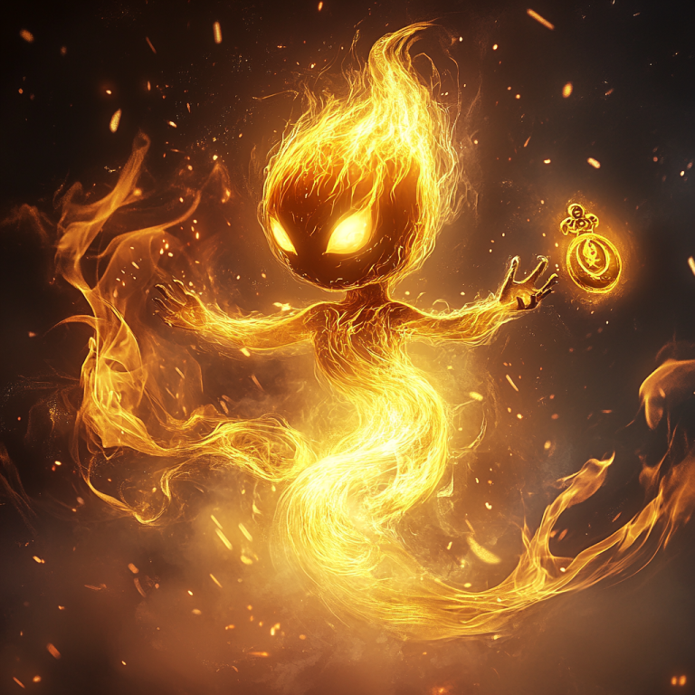 Direkt vor mir schwebte ein Wesen, das so unwirklich wirkte, als hätte jemand einer Flamme Leben eingehaucht. Sein Körper bestand aus reiner Glut – geschwungen, tanzend und ständig in Bewegung. Die Konturen verschwammen zwischen Licht und Rauch, und doch erkannte man eine Gestalt. ...